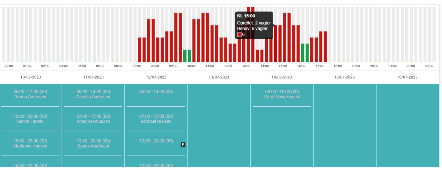 - Grøn, hvis der for alle berørte tidsintervaller er planlagt vagter svarende til behovet, fx 3/3