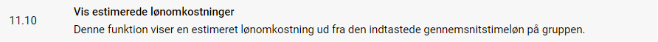 Ved at aktivere denne funktion til, vil du kunne få vist den estimerede lønomkostning i Skemaplanlægning. Der vil på gruppen fremkomme feltet: Gennemsnitstimeløn, der vil være grundlaget på udregningen.