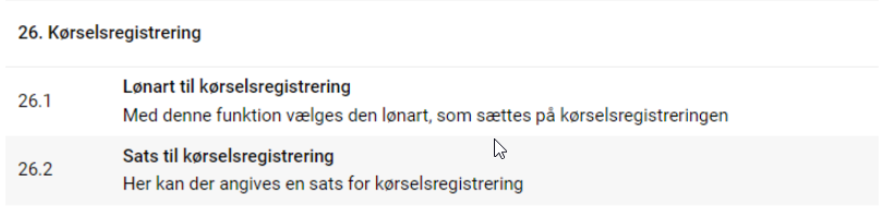 I Opsætning, System, Kørselsregistrering er det muligt at angive den lønart de kørte enheder skal eksporteres på. Desuden er det muligt at angive en sats for de kørte kilometer.