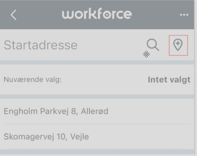 Under Startadresse, Via-punkt og Slutadresse kan der oprettes nye lokationer hvis disse ikke er oprettet. Tryk på dråben med plusset +