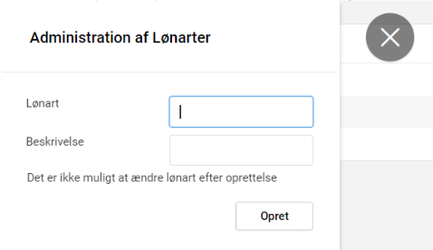 Når der trykkes på Opret får du mulighed for at oprette den enkelte lønart: