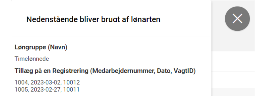 For at kunne slette en lønart, må den ikke være i brug. Forsøger du at slette en lønart der er i brug, vil du få følgende besked:
