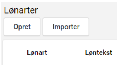 Det er også muligt at importere lønarter, ved brug af .CSV fil, ved at trykke på Importer.