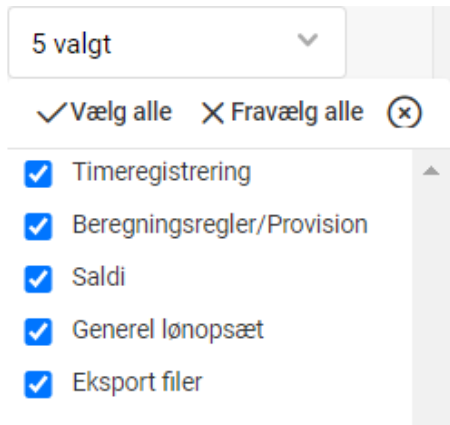 Når lønarten er oprettet, skal der vælges hvor lønarten skal være tilgængelig. Dette kan tilrettes løbende.