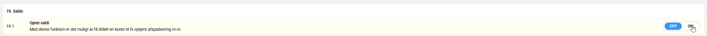 - Startdato: angiver hvornår saldoen skal være aktiv fra.