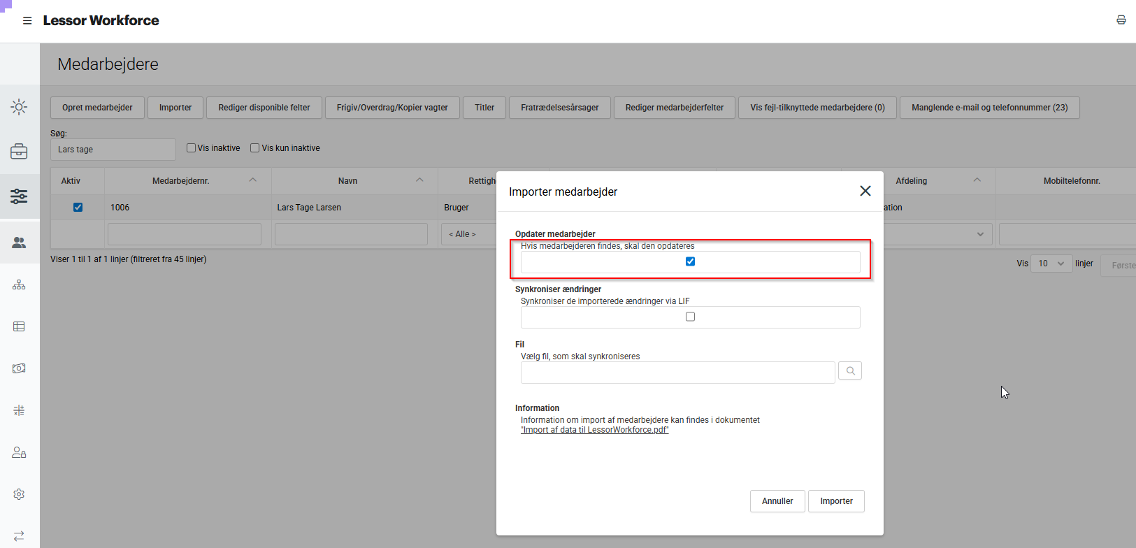 Det er en rigtig god ide at prøve at indlæse på en enkelt medarbejder først, evt. en testmedarbejder, for at sikre sig at man har udfyldt de rigtige felter.