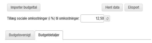 I Opsætning, System, Lønbudget er det muligt at angive en default procent til brug for beregning af sociale omkostninger.