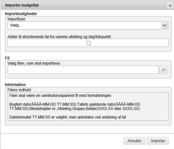 Hvis det importerede data skal tilføjes de eksisterende tal, sættes hak i ”Adder til eksisterende tal fra samme afdeling og dag/tidspunkt.