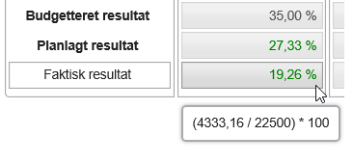 Ved at holde musen over et af de beregnede procenttal på afdelingen, vises beregningen, som ligger til grund for dette.