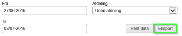 Det er muligt at udlæse det hentede data til Excel. Knappen Eksport vil generere en Excel fil, indeholdende det fremhentede data: