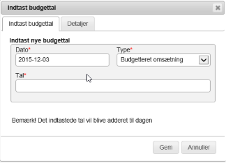 ”Budgetteret omsætning” kan bruges til at lægge de fastlagte budgettal ind pr. dag for perioden.