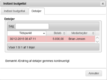 Under fanen Detaljer vises de indtastede værdier og disse kan inaktiveres/aktiveres ved at markere linjen med musen, hvorefter de vil blive markeret med rødt. Derved tæller de ikke med i den endelige beregning af omsætningstal.