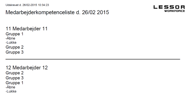 Mulighed for at udskrive medarbejdere i en gruppe/afdeling og med kompetencer.