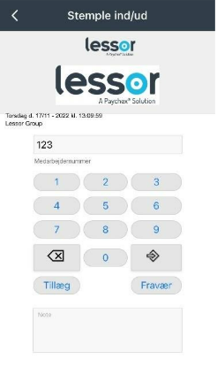 Med rettighedsprofilen Bruger har du som udgangspunkt adgang til ovenstående. Muligheden for at foretage ind-og udstemplinger opsættes af din arbejdsgiver og kan tilknyttes via rettigheder. Lessor app’en er tilgængelig for iPhone og Android.