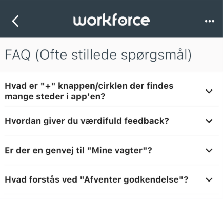 Fra de samme tre prikker kan du findes en FAQ, som løbende vil blive opdateret med relevante svar på oftest stillede spørgsmål til appen.