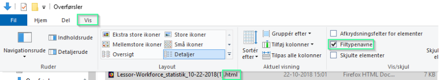 Gå i filfinder, vis Filtypenavn, omdøb fra .xls til .html