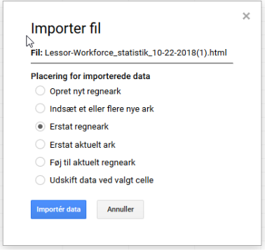 Vejledning til brug ved eksport statistikker fra Workforce til Google Sheets