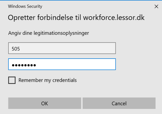 Indtast evt. brugernavn og adgangskode i pop-up’en