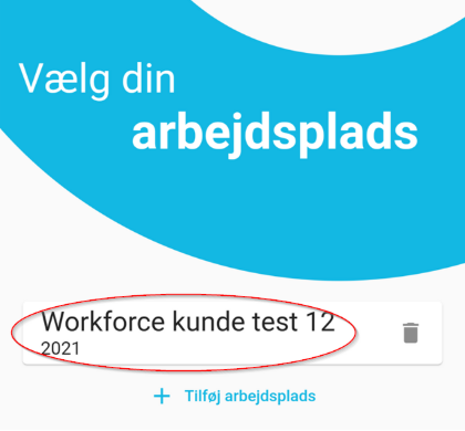 I dette tilfælde hedder virksomheden ”Workforce kunde test 12” og medarbejderens brugernavn er 2021.