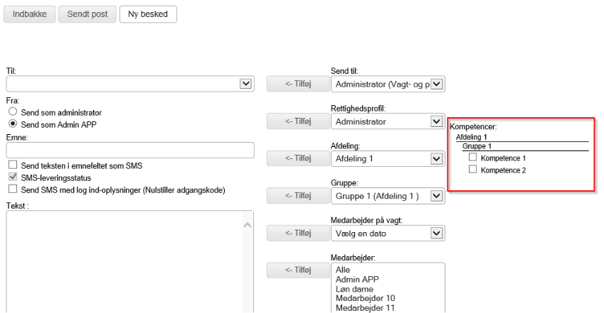I Beskeder er det muligt, at sende beskeder til medarbejdere med en specifikke kompetencer.