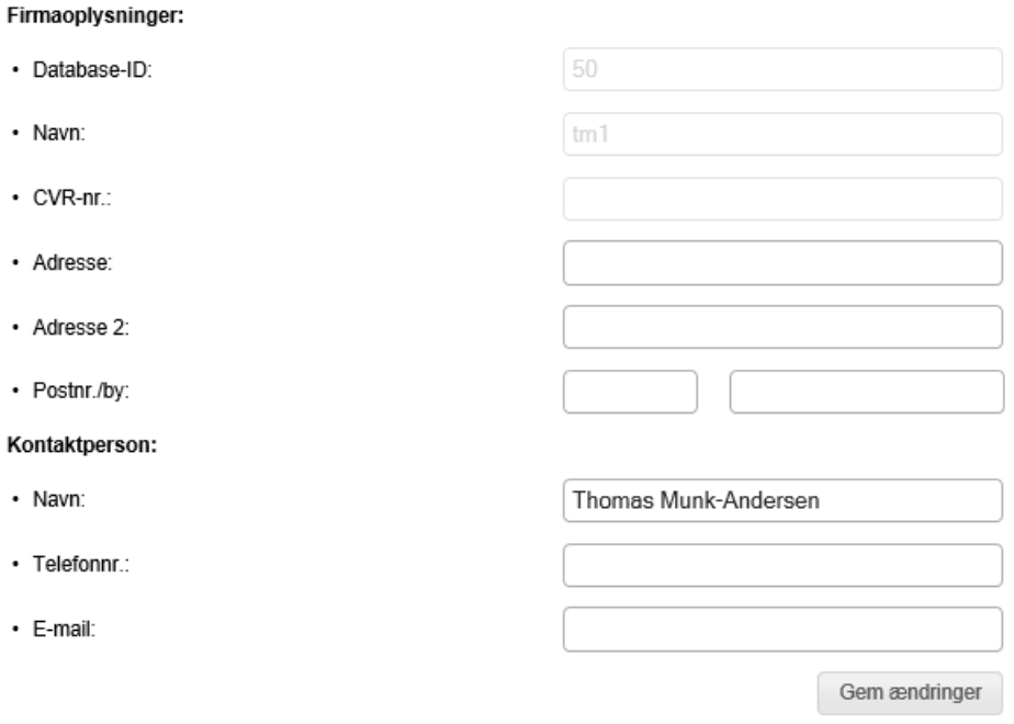 Her vises oplysninger om virksomhedens kontaktdataoplysninger, oversigt over forbrug af klip, supportklip og faktureringshistorik. Det er også her hvor der kan indkøbes nye klip og autokøb af klip kan aktiveres.