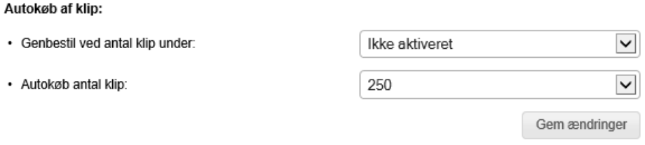 | Autokøb antal klip | Antal af klip ved hver genbestilling |