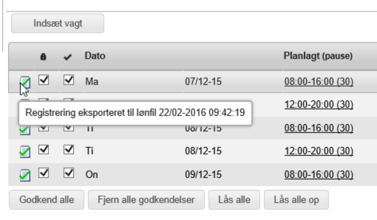 Er det muligt at få vist i, Timeregistrering, hvilke registreringer der er blevet eksporteret til en lønfil.