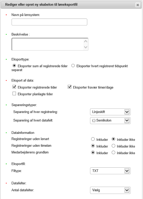 Tryk på knappen Opret fra skabelon og du vil nu få muligheder for selv at definere opbygningen af eksportfilen.