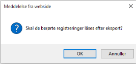 Når data eksporteres bliver du spurgt om data skal låses. Låsning sætter flueben ved ”Lås” i Timeregistrering.