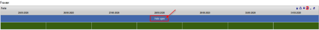 Indsæt fravær for en uge, højreklik på ugen og vælg fraværsårsag.