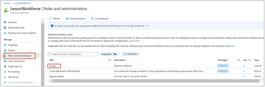 - To create new roles, the version of Microsoft Entra ID must be premium P1 or P2, and the role name must be identical to the profile name in LessorWorkforce.