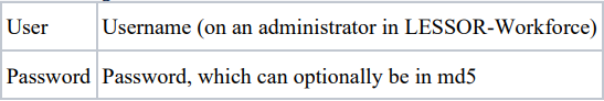 The Service is located at https://workforce.lessor.dk/sync/importStaffingNeeds.php The following can be send as POST or Basic access authentication: