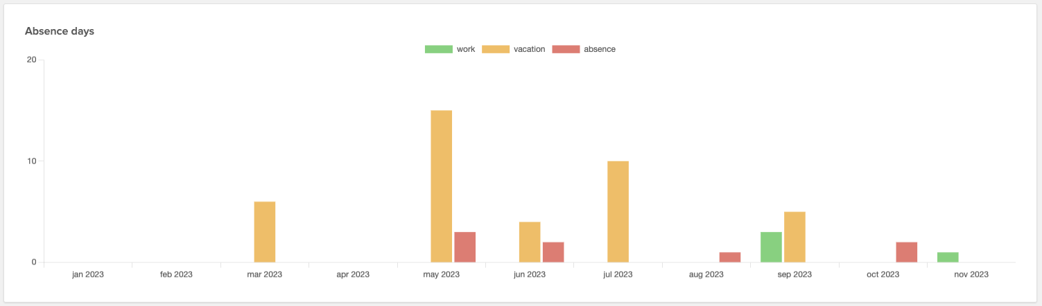 Søjlediagrammet viser alle tre fraværstyper for hver måned