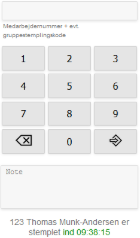 Derudover er det muligt at stemple ind via en gruppestemplingskode som angiver i hvilken gruppe medarbejderen stempler ind. Se mere under punkt: 4.0