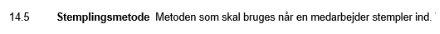 Benyttes stemplingskoder ved Ind-/ og udstemplingerne, skal dette aktiveres i Opsætning, System. Stemplingskode kan benyttes, hvis virksomheden ønsker en ekstra sikkerhed for at undgå fejlindtastninger. Angiv stemplingsmetode: