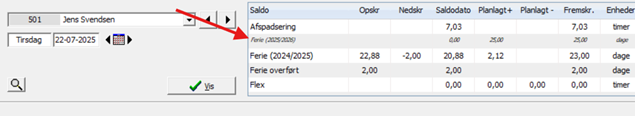 Hans feriesaldi vises aktuelt således: