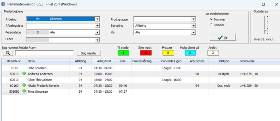 Såvel Individuelle multijobs som Gruppe multijobs fremgår nu af fremmødekontrollen, så det nu er muligt at se, hvilket job en medarbejder aktuelt er stemplet ind på.