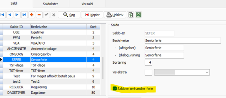 Hvis saldi allerede er i brug hos jer, vil det være mest hensigtsmæssigt at oprette nye saldi til disse dage / timer. Dels skal saldiene omdøbes til en saldo-id på maks. 5 karakterer for at kunne få tilføjet årstal, dels skal selve saldoen markeres til at ”Omhandle Ferie”