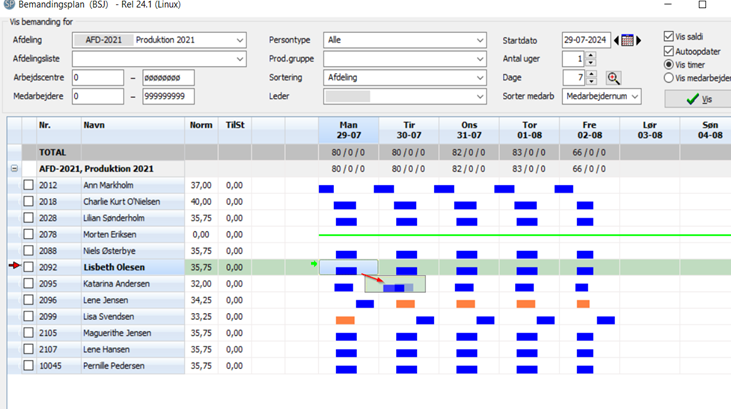 Bemandingsplanen er blevet udvidet med en ny funktionalitet, så det er muligt at ændre på en arbejdsplan ved at trække i den (drag and drop).