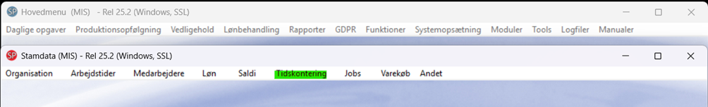 Gå retur til Stamdata menuen og vælg Tidskontering.