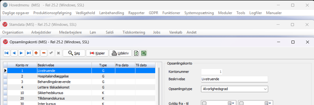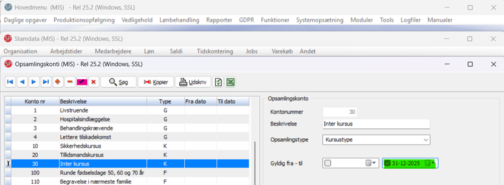 Vælg Opsamlingskonti, som skal have tilføjet/ændret/stoppet en værdi. Undgå at SLETTE værdier.
