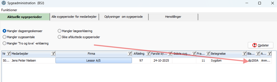 I oversigten over manglende dagpengeskemaer var feltet, der angav hvilken blanket, der manglede forsvundet. Den vises nu igen:
