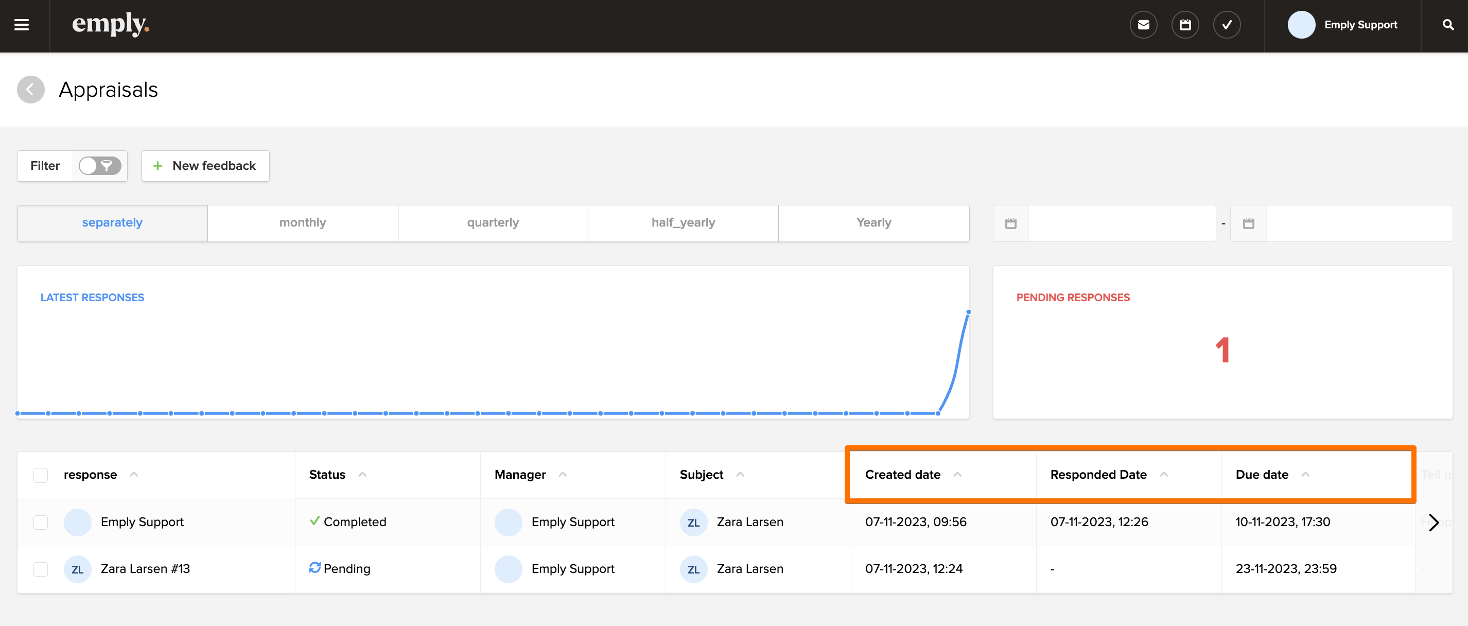 Furthermore, there is also now three new columns to support the due date functionality: 'Created', 'Responded' and 'Due date'.