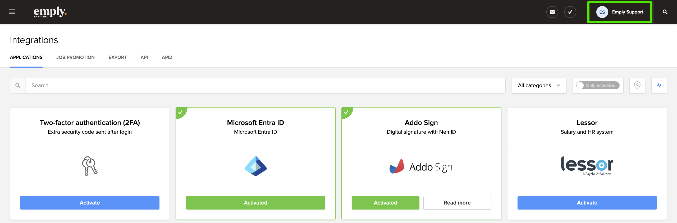 1.1 Go to Settings > Integrations > click on ‘Activate’ at the Microsoft Entra ID integration: